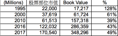 巴菲特在這次的股東信,有提到他在2012年所做的一項債券轉股票的動作,可以提供他對於標的選擇上的思維邏輯。他提到在2012年11月,our bonds – now with about five years to go before they matured – were selling for 95.7% of their face value. At that price, their annual yield to maturity was less than 1%. Or, to be precise, .88%. 殖利率0.88%,換算成Multiples的話,是接近100倍。